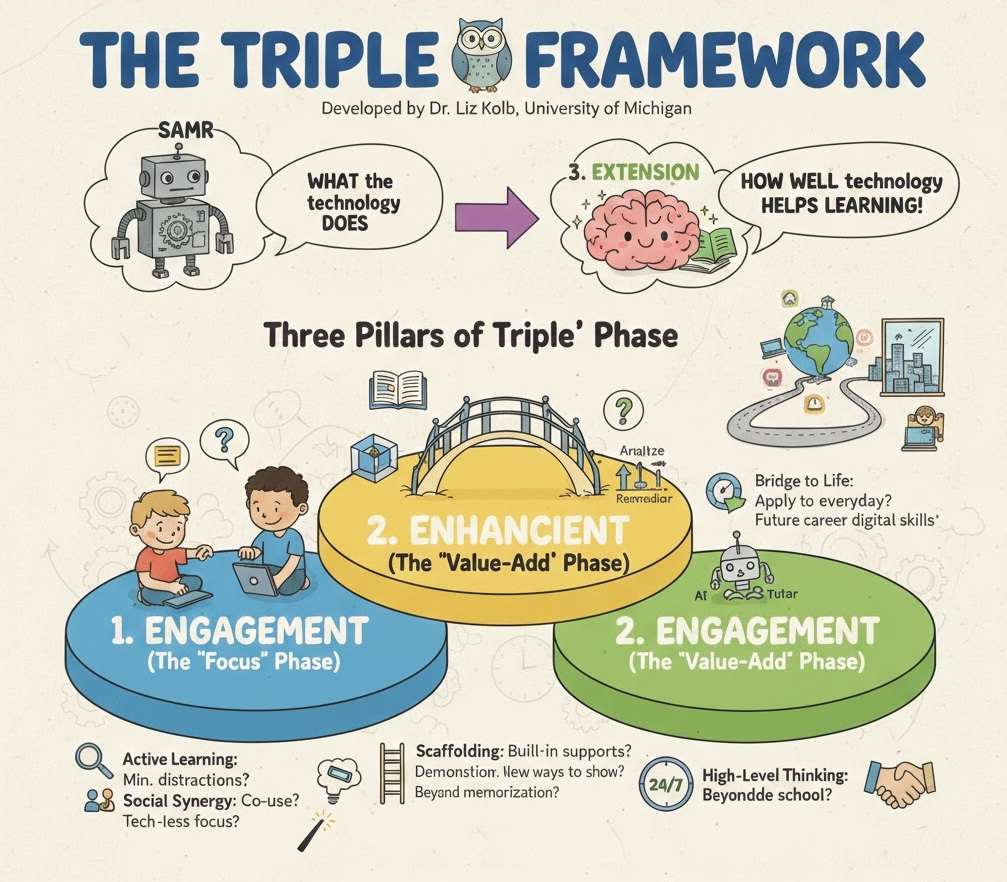 Why has the Triple E Framework become a popular tool for evaluating EdTech tools? In the current era of AI, many tools “Engagement” levels are off the charts, but their “Enhancement” is often low (students just let the AI do the thinking). The Triple E Framework is being used to filter out Generative AI tools that do the work for the student, favoring tools that use AI to Enhance the student’s own cognitive process.
