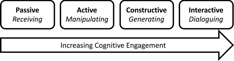 Chi, M. T. H., & Wylie, R. (2014). The ICAP Framework: Linking Cognitive Engagement to Active Learning Outcomes. Educational Psychologist, 49(4), 219–243. https://doi.org/10.1080/00461520.2014.965823