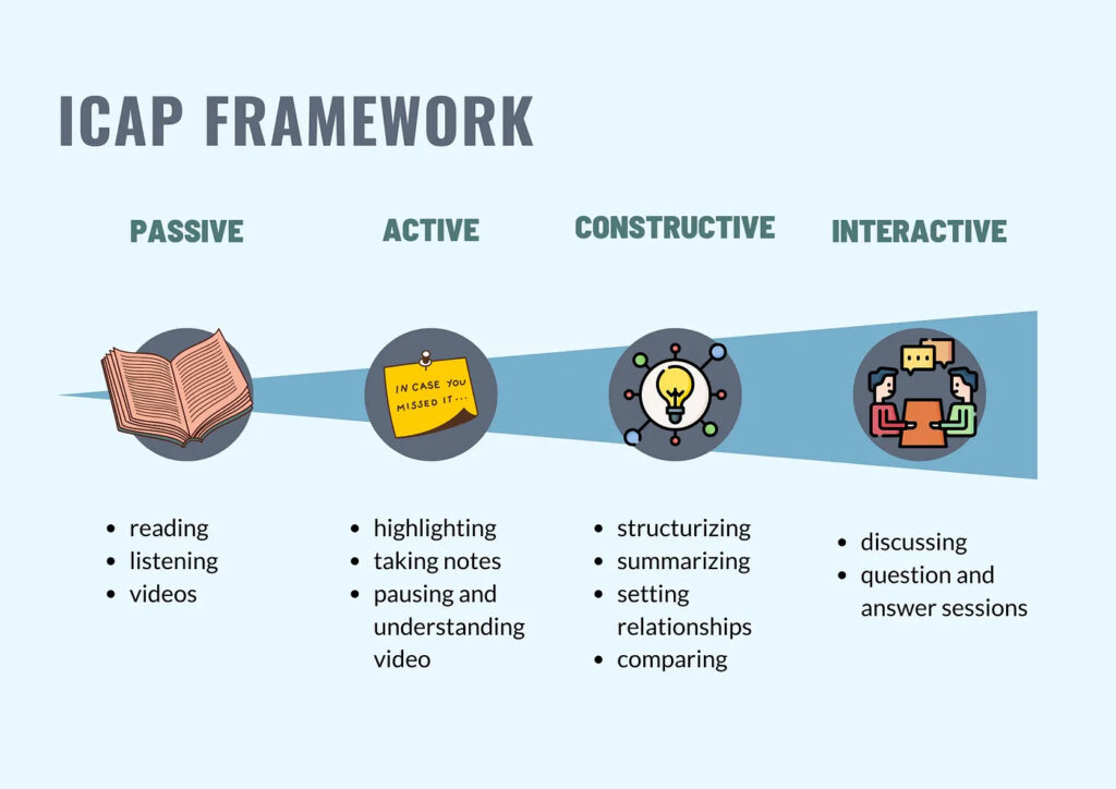 Taking this concept one step further, researchers Chi and Willie (2024), introduce the ICAP framework, offering four modes of engagement.